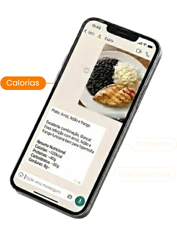 A IA que registra as suas calorias e te ajuda na dieta 24h por dia, direto no WhatsApp, de forma rápida e prática!